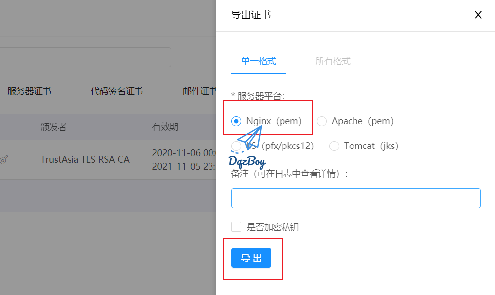 - 证书可以选择免费的即可,我这里是腾讯提供的免费域名SSL证书