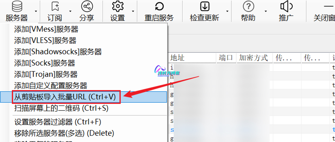 - 将上面拷贝的节点信息添加到V2rayN客户端中