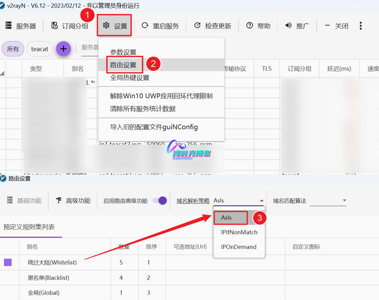 - v2rayN比较简单,直接使用客户端提供的绕过大陆路由方式就能解决DNS泄露的问题。