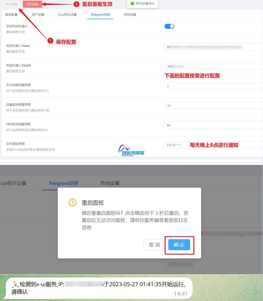 X-UI支持通过Telegram bot实现每日流量通知,面板登录提醒以及cmd控制等功能,使用Telegram bot,需要自行申请