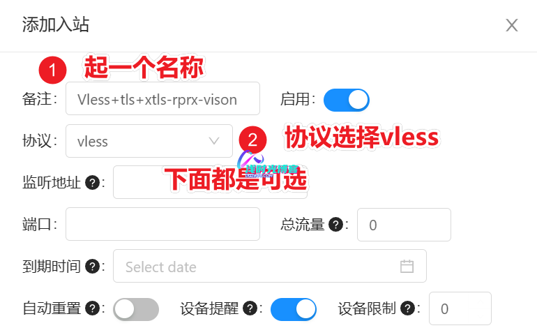 - 上面的注意事项中都达到要求后,我们只需要在V2UI面板中,将VMESS协议中的内容改一改然后换成VLESS协议即可使用