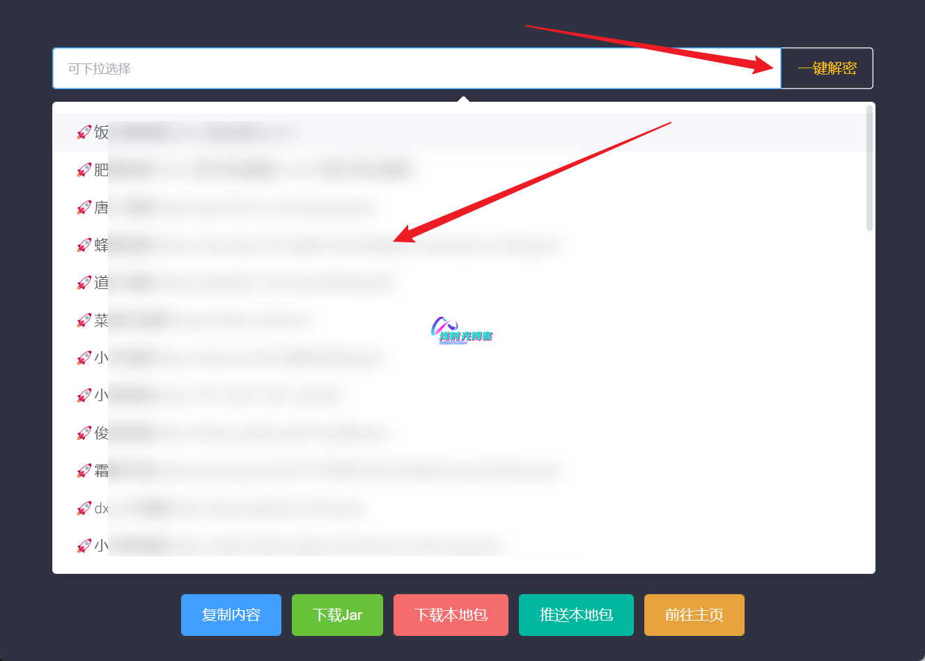 - 下载软件并进行安装,安装完成后运行,然后打开软件界面,点击顶部下拉框,选择一个线路并点击右侧的 一键解密