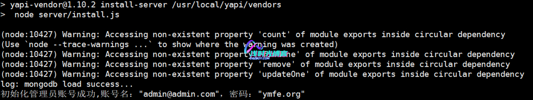 初始化管理员账号成功,账号名:”admin@admin.com”,密码:”ymfe.org”