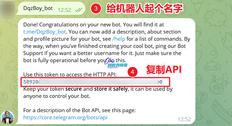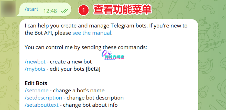 - 通过 BotFather 申请TG机器人并获取其API TOKEN
