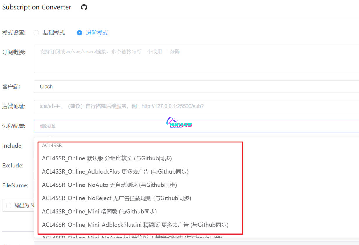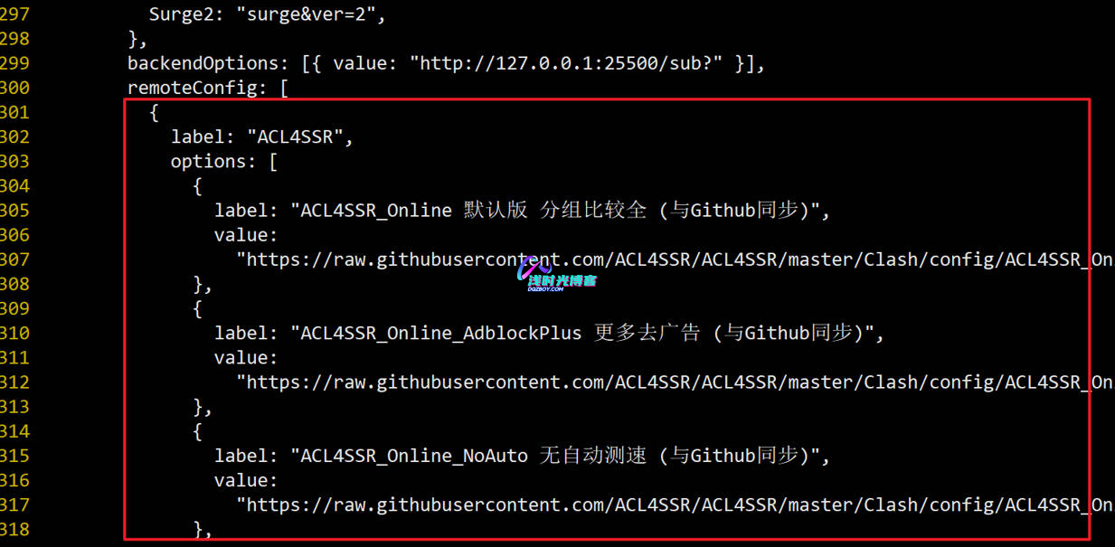 /usr/local/sub-web/src/views/Subconverter.vue文件,找到关键词remoteConfig: [下面然后添加下面的内容
