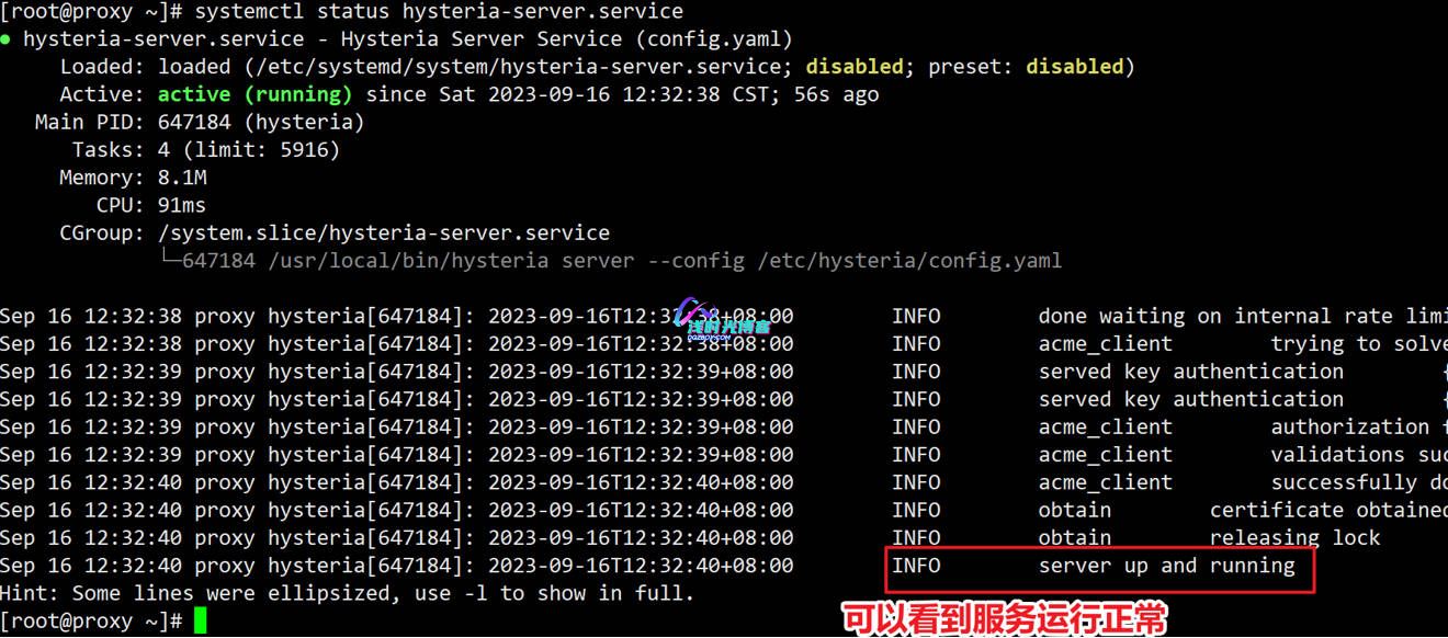 [root@proxy ~]# systemctl start hysteria-server.service