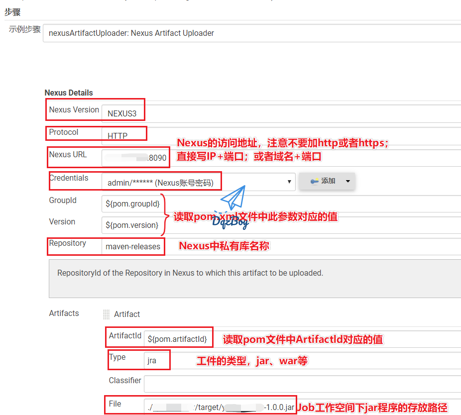 nexusArtifactUploader(artifacts: [[artifactId: "${pom.artifactId}",