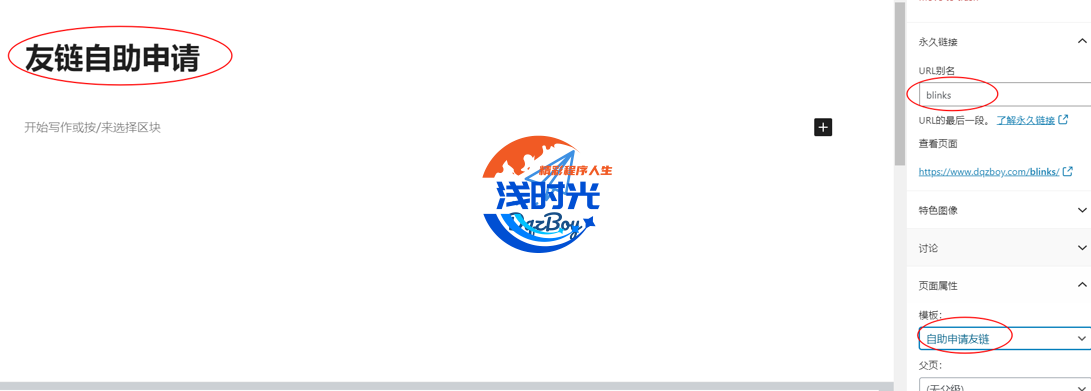 - 登入WP后台,我们原文链接:https://dqzboy.com手动创建一个空白页面,标题定位: