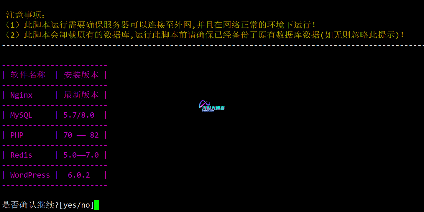 本脚本会进行系统内核升级、内核优化、系统组件、依赖包安装,PHP、Nginx性能优化等操作。