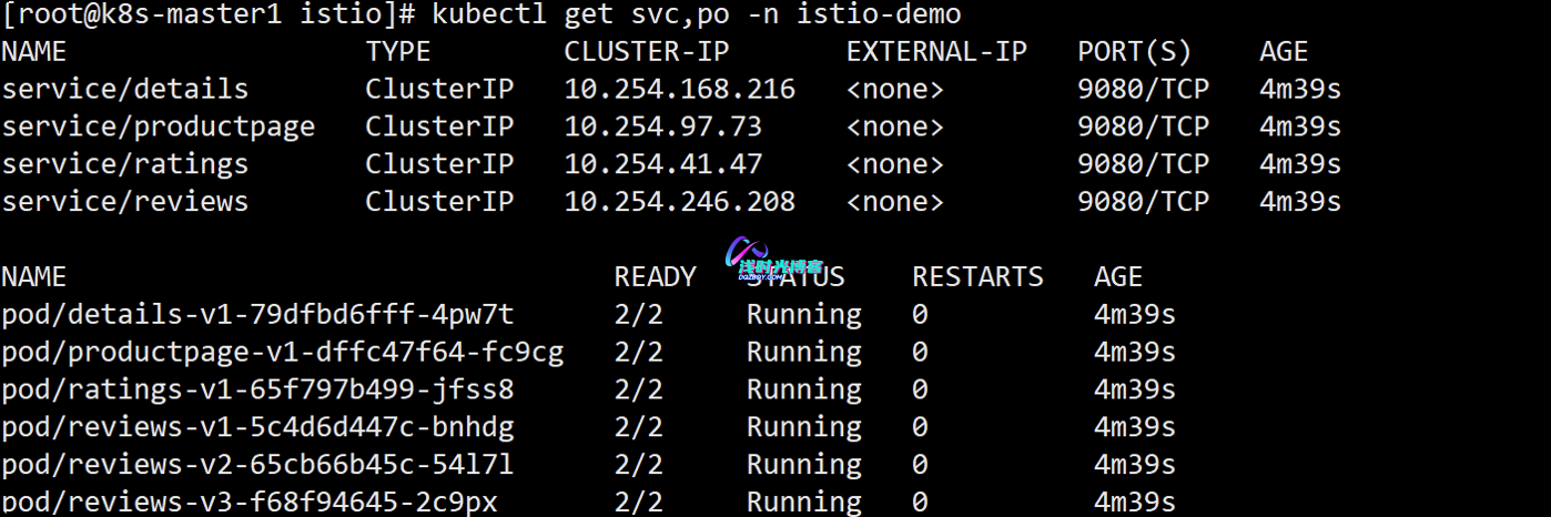 [root@k8s-master1 istio]# kubectl apply -n istio-demo -f samples/bookinfo/platform/kube/bookinfo.yaml