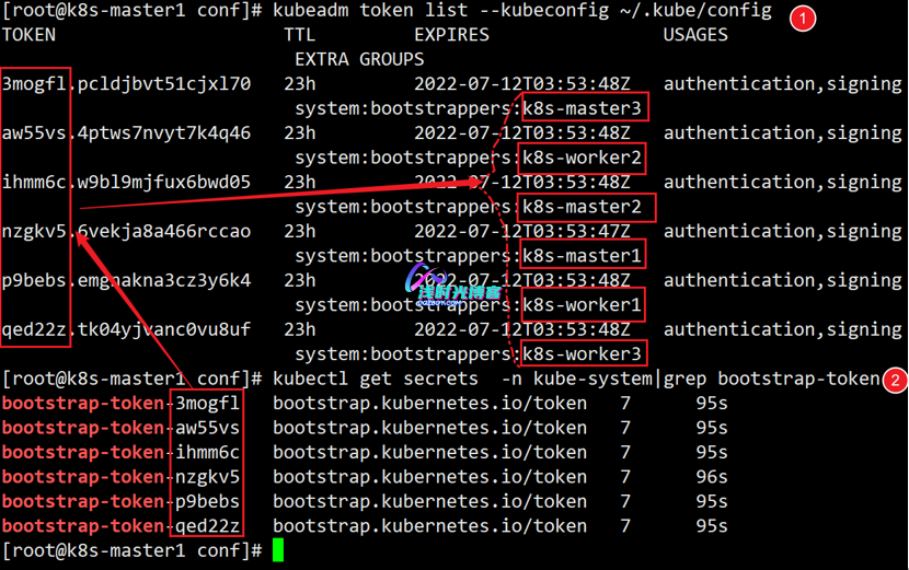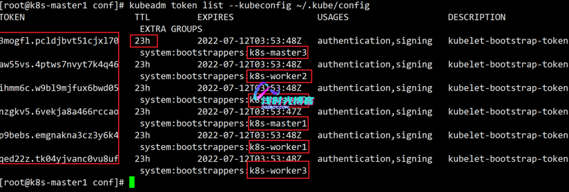 [root@k8s-master1 work]# kubeadm token list --kubeconfig ~/.kube/config